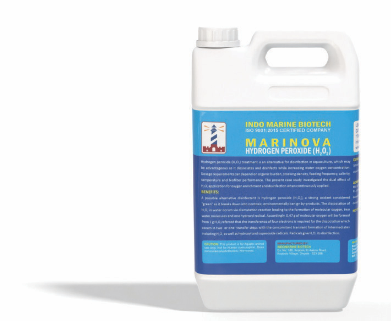 Application: Mix 500 ml Hydrogen Peroxide in 50 Lts. of pond water and broadcast evenly in the culture pond during day time.
